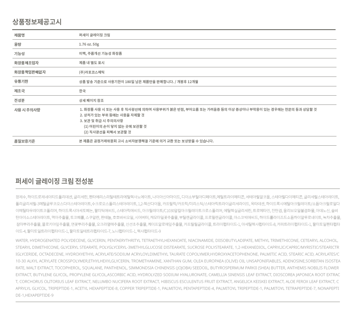 퍼세이 글레이징크림 전성분
